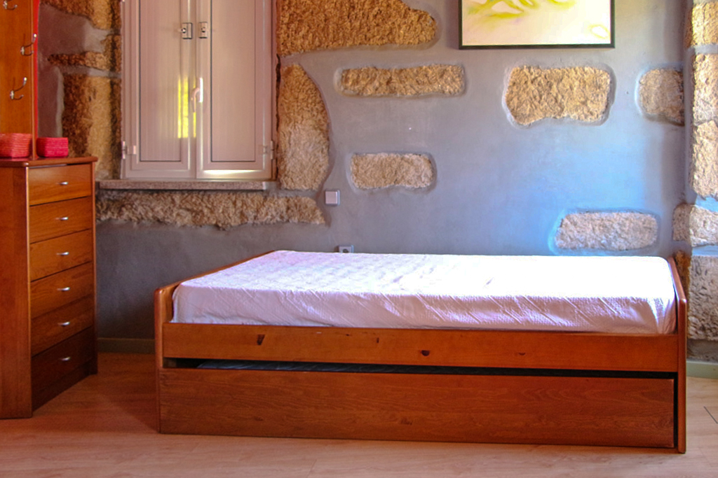 2ºPiso: Quarto de casal, cama de apoio e casa de banho.