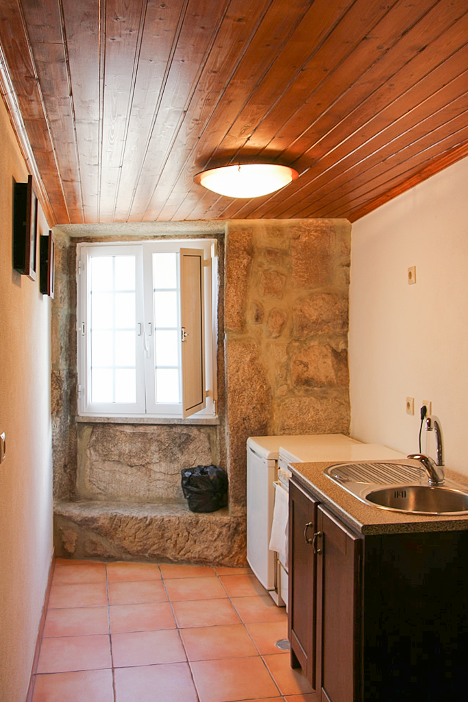 2º Piso Inferior: Cozinha c/ sofá cama de dois lugares, casa de banho de apoio e um estúdio com duas camas de gaveta.